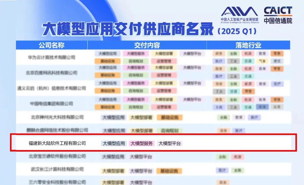 近日,中国人工智能产业发展联盟(AIIA)与中国信息通信研究院联合发布《大模型应用交付供应商名录(2025年Q1)》。凭借在大模型应用交付领域的卓越技术实力与丰富实践成果,z6com尊龙成功入选名录,标志着公司在人工智能产业生态中的技术能力再获权威认可。