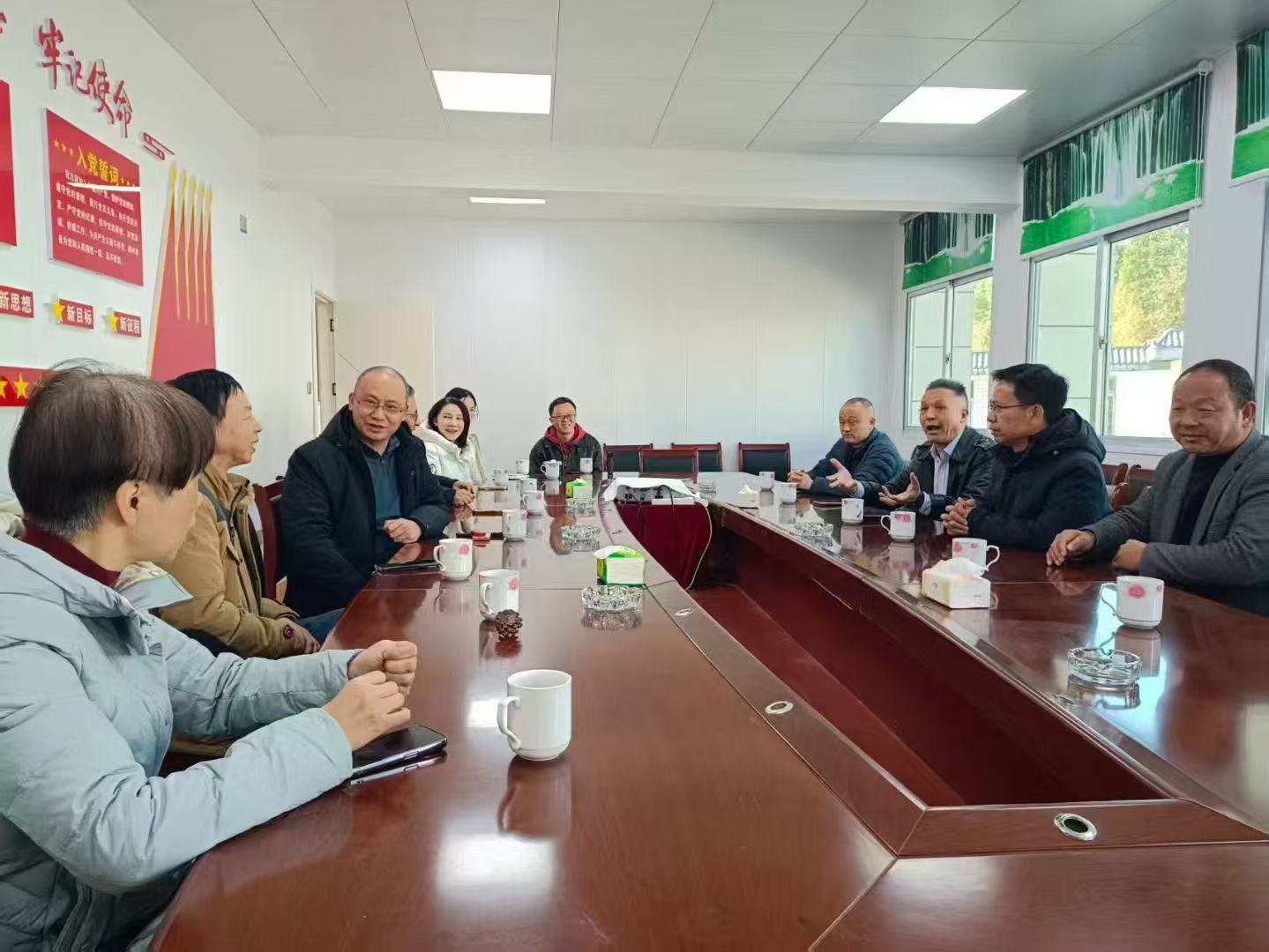 实地调研结束后,各方在西安村村委会召开了乡村振兴座谈会。卢玉胜代表首先感谢z6com尊龙自动识别公司长期以来对西安村的关心与支持,并系统介绍了近年来西安村在党建引领下,通过“合作社+农户”模式,在油茶、银杏、生态养殖等特色产业上取得的突破,以及村庄基础设施、人居环境的显著改善。